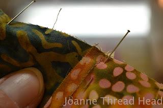 In the above picture you can see the tapered seam allowance. I stitched right through the point where the two seams meet.
